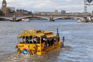 Truk amfibi ini pada awalnya dirancang oleh militer Amerika selama Perang Dunia II untuk melintasi daratan dan perairan. Truck amfibi yang dikenal sebagai DUKW kini bisa dinikmati untuk kalian para wisatawan dimaana truk ini akan menawarkan perjalanan melewati landmark terkenal London sebelum meluncur ke Sungai Thames untuk menikmati pemandangan dari atas air.