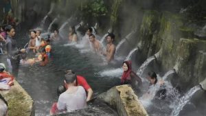 Setelah lelah menikmati beberapa tempat Wisata kini saatnya anda memanjakan tubuh anda dengan bersantai sejenak, berendam air panas di Pemandian Air Panas Guci, pemandian ini terletak dibawah Telapak Kaki Gunung Selamet dengan ketinggian 1.500 mdpl, lebih tepatnya berada di jl. Objek Wisata Guci, Kalengan, Bumijawa, Kabupaten Tegal. Berendam dan menikmati Suasana yang sejuk, serta kabut datang setiap saat membuat anda akan lebih segar kembali selepas anda berlibur. Disini juga Anda bisa berkemah, bermain outbond, dan aktivitas seru lainnya. Cocok untuk menjadi destinasi wisata bareng keluarga ataupun teman. Pemandian air panas ini buka setiap hari dengan harga tiket Rp 10.000 – Rp 25.000. jam operasional dimulai dari pukul 07.00 – 20.00 WIB.
